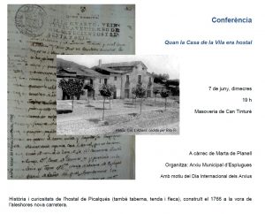 Conferència “Quan la Casa de la Vila era hostal” – Esplugues de Llobregat – 7 de juny de 2017