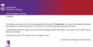 Presentació de la novel·la “Empremtes” – Cornellà de Llobregat – 31 de març de 2022