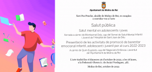 I a continuació, a la presentació de les activitats de promoció de benestar emocional infantil, adolescent i juvenil per al curs 2022-2023, a càrrec de Quim Expósito, cap del Negociat d’Infància i Joventut de l’Ajuntament de Molins de Rei.