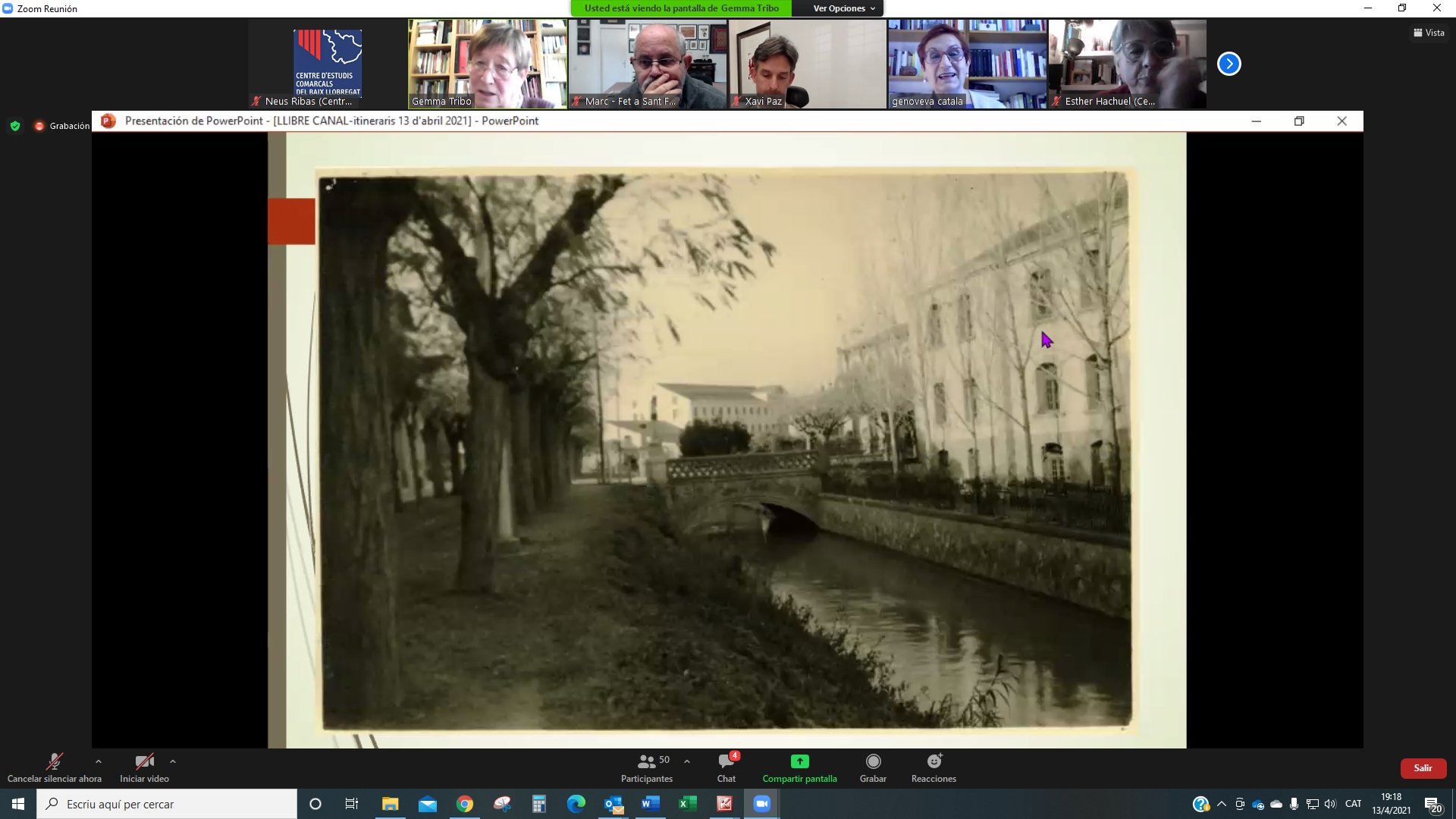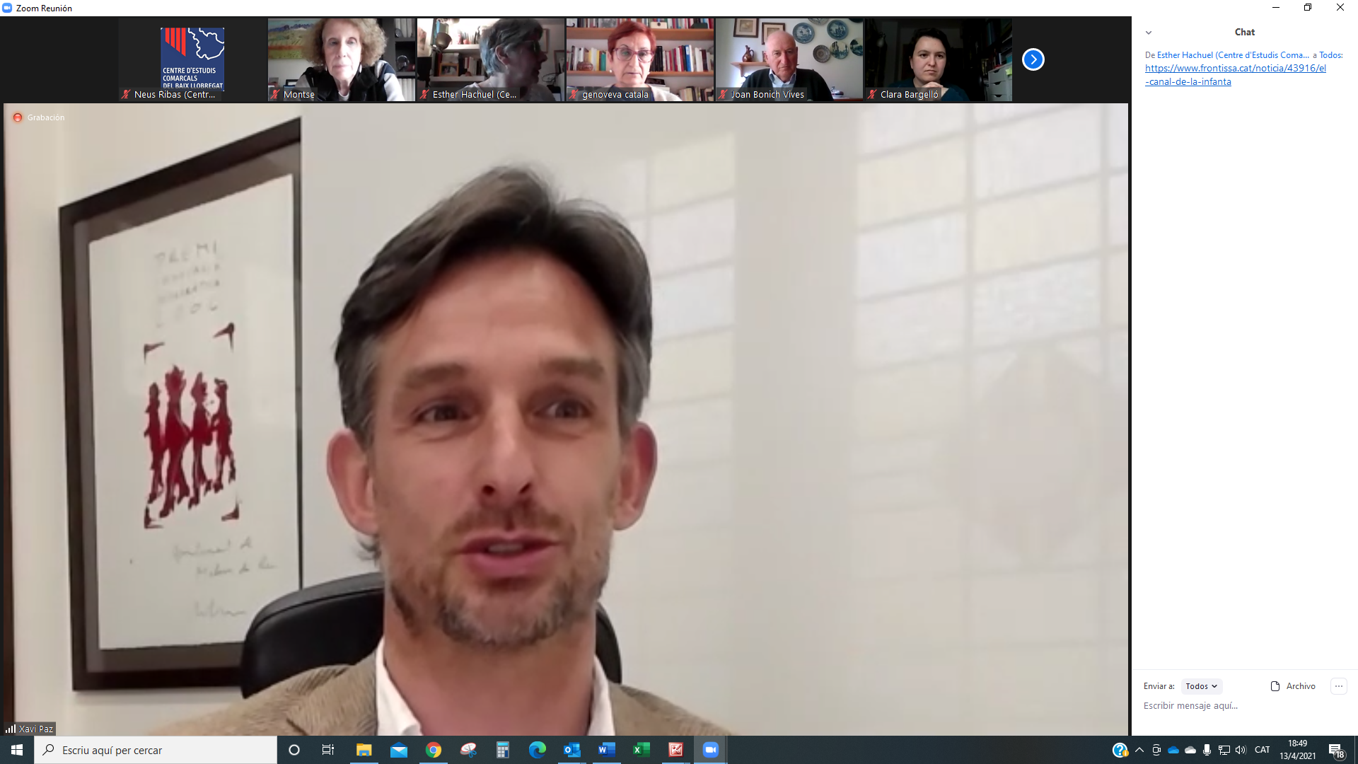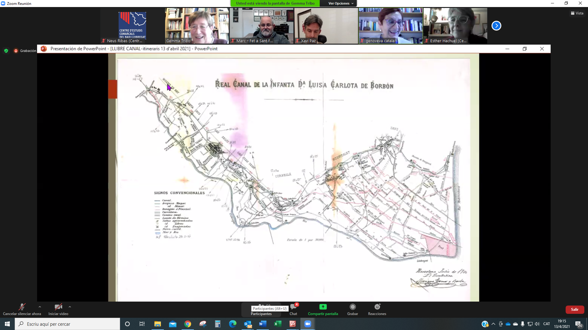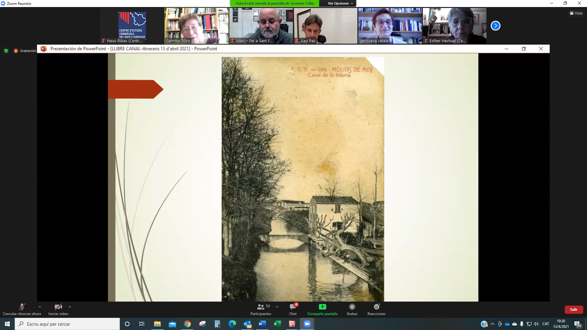 El 13 d’abril ens vam reunir per la plataforma Zoom més de 50 persones a la presentació del llibre Descobrir el Canal de la Infanta. Set itineraris per la seva xarxa. L’acte el va obrir Genoveva Català, presidenta del CECBLL que també va llegir un escrit enviat per ATLL Concessionària amb qui hem elaborat les guies de la col·lecció Itinerari de l’aigua, a la que pertany aquesta tercera edició. També hi va ser present Xavi Paz, alcalde de Molins de Rei, ciutat que va acollir la presentació virtual d’aquest llibre.
