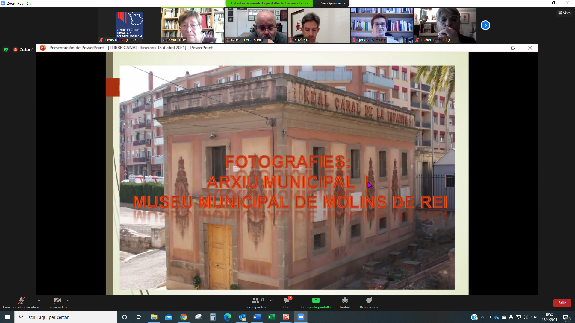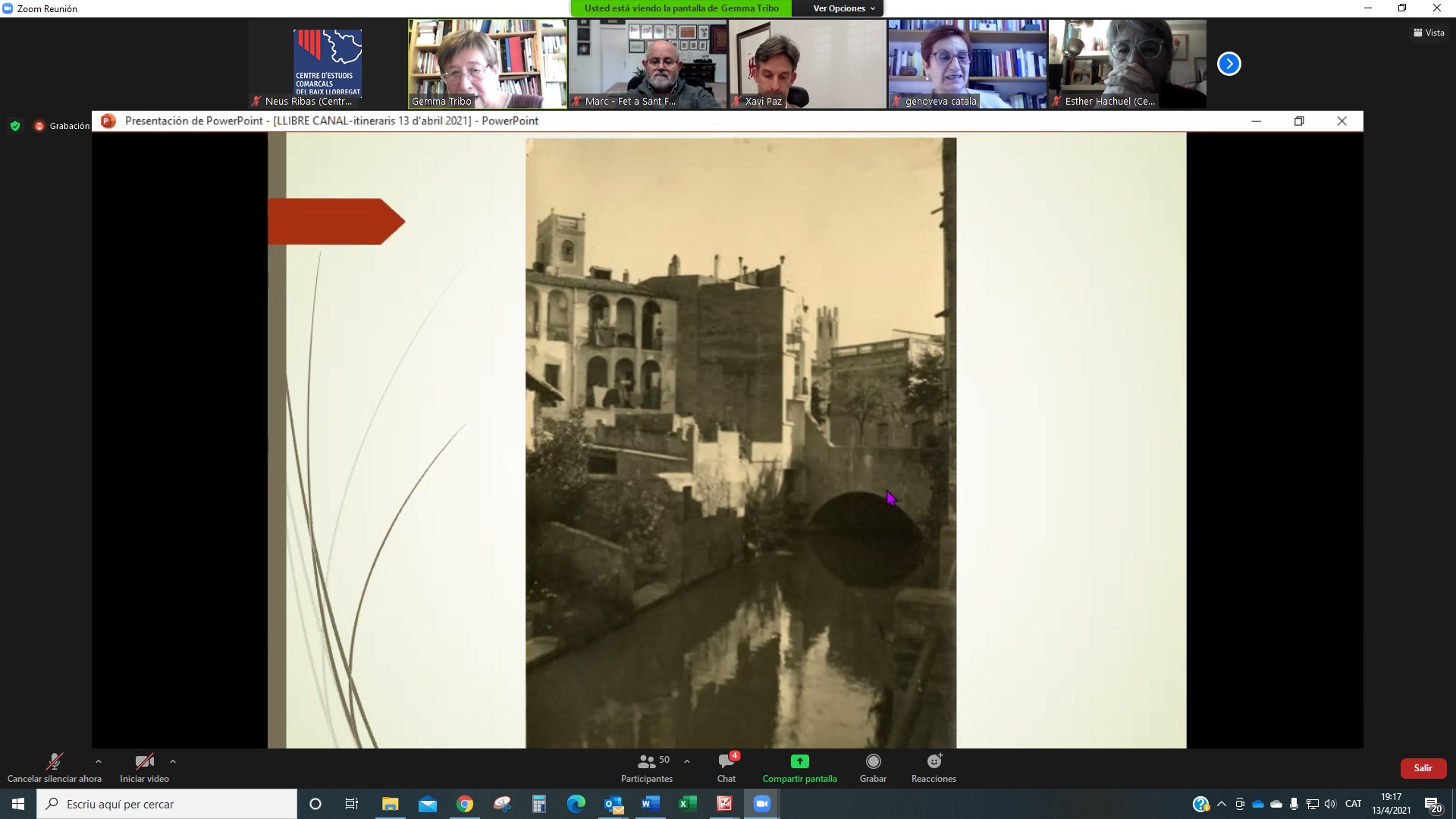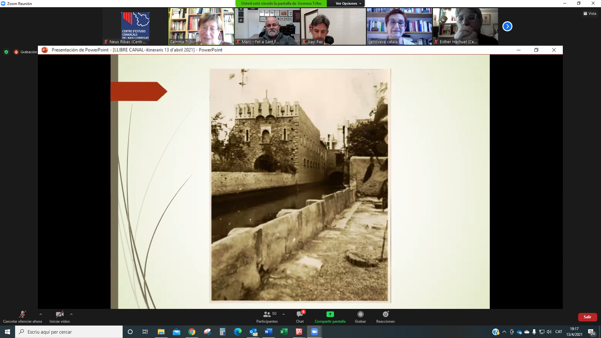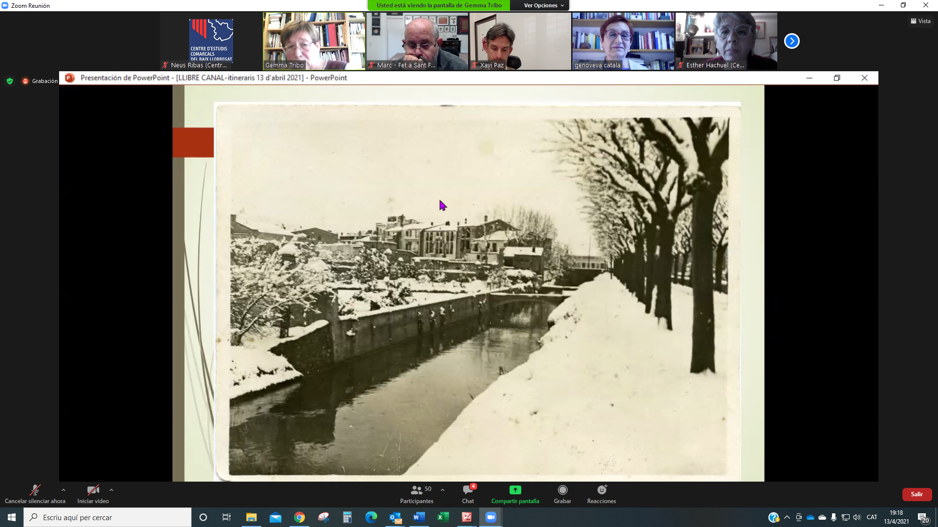 El 13 d’abril ens vam reunir per la plataforma Zoom més de 50 persones a la presentació del llibre Descobrir el Canal de la Infanta. Set itineraris per la seva xarxa. L’acte el va obrir Genoveva Català, presidenta del CECBLL que també va llegir un escrit enviat per ATLL Concessionària amb qui hem elaborat les guies de la col·lecció Itinerari de l’aigua, a la que pertany aquesta tercera edició. També hi va ser present Xavi Paz, alcalde de Molins de Rei, ciutat que va acollir la presentació virtual d’aquest llibre.