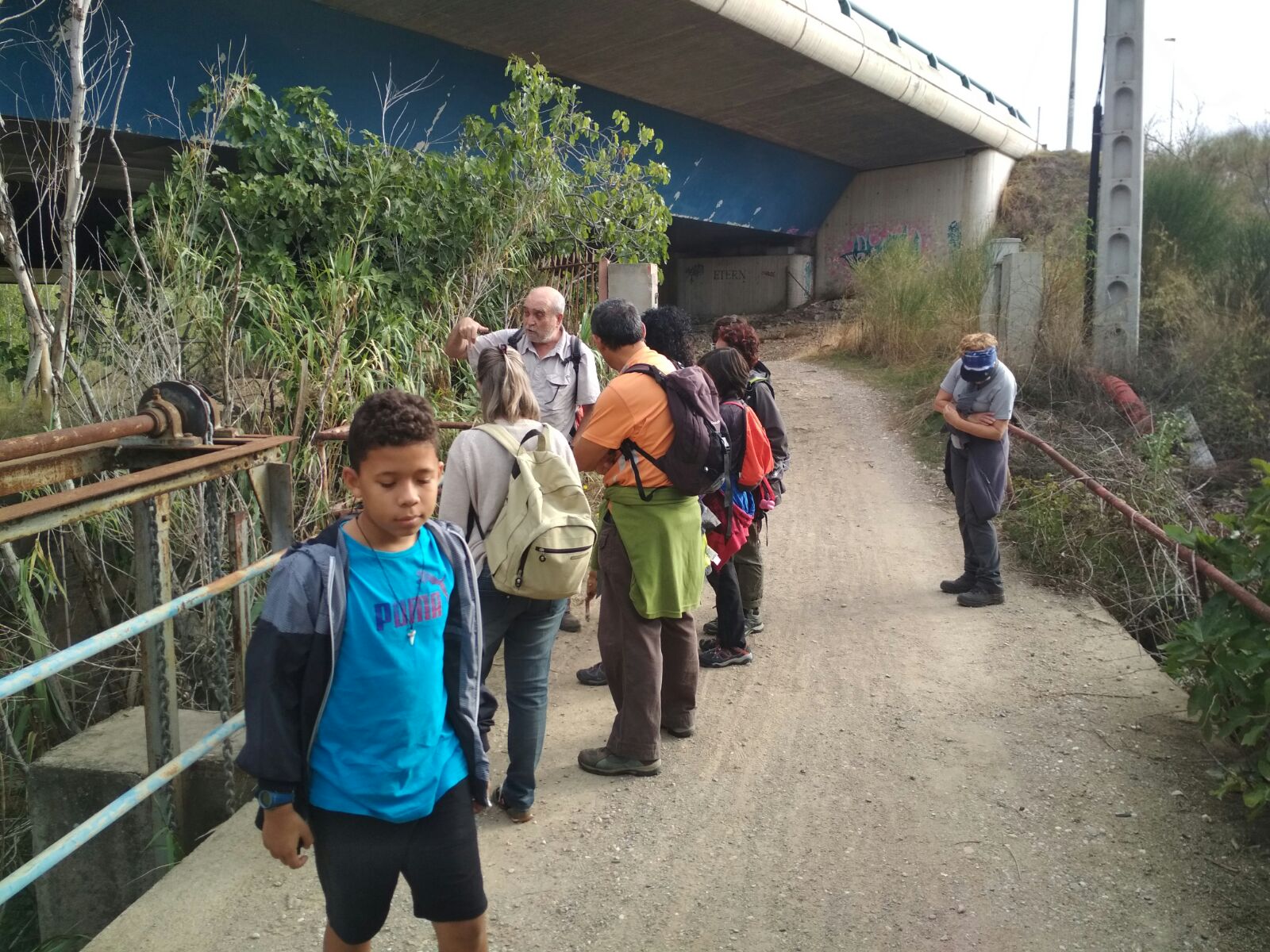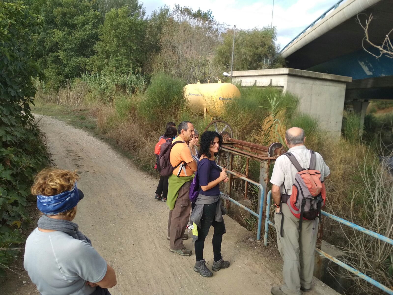 A les 9 del matí del dissabte 7 d’octubre vam iniciar el cinquè itinerari que ens va dur fins a la Central Sedó de Corbera de Llobregat. Després de creuar el riu pel Pont del Diable de Martorell, vam caminar per la N-II fins al Congost des d’on vam baixar a la resclosa Sedó. Allí vam poder veure les comportes i el canal de derivació, ara ja fora de servei, vam continuar pel camí de ribera fins a les basses de ca n’Albareda. Després de creuar el polígon industrial fins a trobar de nou el canal, vam seguir fins a l’estació de FGC de Sant Andreu de la Barca, on vam donar per acabada l’excursió.