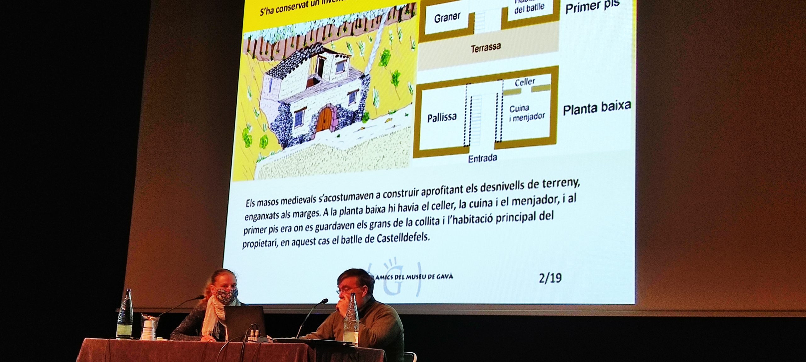 El matí del 13 de novembre una seixantena de persones van conèixer com eren fa segles les llars de Gavà, Sant Climent de Llobregat, Sant Boi de Llobregat, Viladecans i Begues. A més de com eren i com es van construir els masos, masets i cases de cos; també vam aprendre sobre els objectes interiors i mobiliari de les llars de Sant Boi, la gran tasca de digitalització que ha fet l’arxiu de Viladecans, la història de les torres de Castelldefels, la mirada fotogràfica de Francesc Català a can Rosés, els elements espantabruixes que hi ha a les llars de Begues i la curiosa història mai explicada d’un lladre de pas al camí Ral. També vam poder gaudir de les maquetes d’alguns masos fetes per Jaume Viñas així com una petita mostra d’elements espantabruixes amb rajoles i un drac cedit pel mestre de forja beguetà Rafael Artigues.
